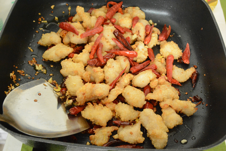 - 材料: 圣農(nóng)鹽酥雞1包 干紅辣椒15個 大蒜瓣3個 生姜4片 腰果20個 花椒3茶匙 食用油2茶匙 步驟: 干紅辣椒切丁,蒜瓣、生姜切末 鹽酥雞炸好備用 將蒜蓉、姜末倒入中火油鍋煸香,然后放入辣椒丁、花椒 放入圣農(nóng)鹽酥雞、腰果,翻炒片刻即可出鍋